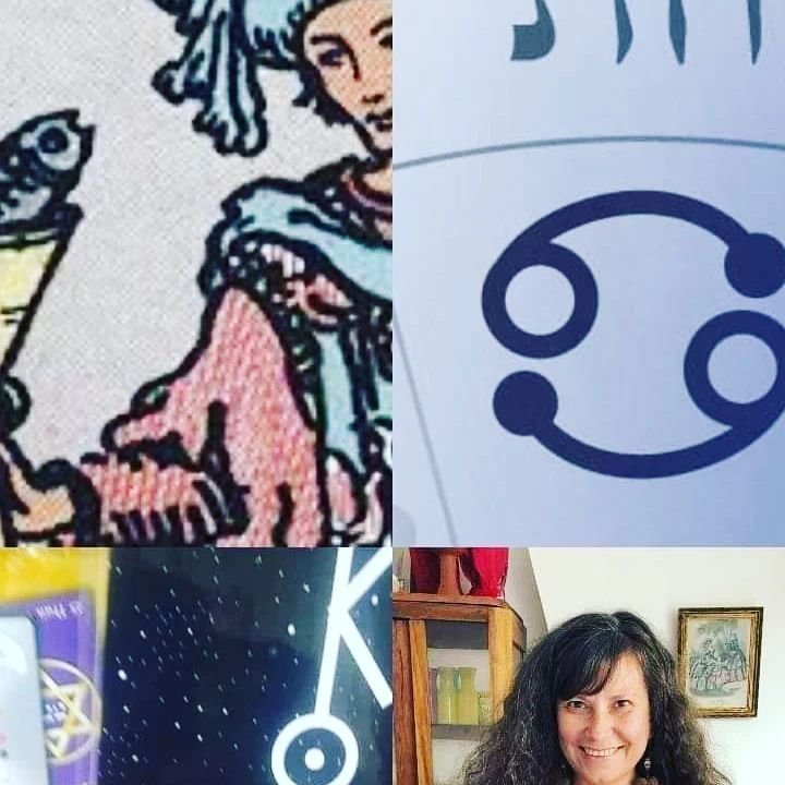 Un pez hacia arriba y otro hacia abajo. Las aguas de arriba se unen a las de abajo reza el código kabbalistico. Cielo y tierra. Como lo muestran por ejemplo la figura del paje de copas del tarot Rider White Smith. Debes saber que el tarot está completamente impregnado de códigos cabalísticos y astrológicos. Cómo es arriba proyectamos sombra abajo. En el tarot, el Paje de Copas, es quien lleva el pez en el cáliz como encargado de la sensibilidad para conectar. Es el agua el conector mediumnico entre los mundos. Para canalizar bien debemos estar sanos.