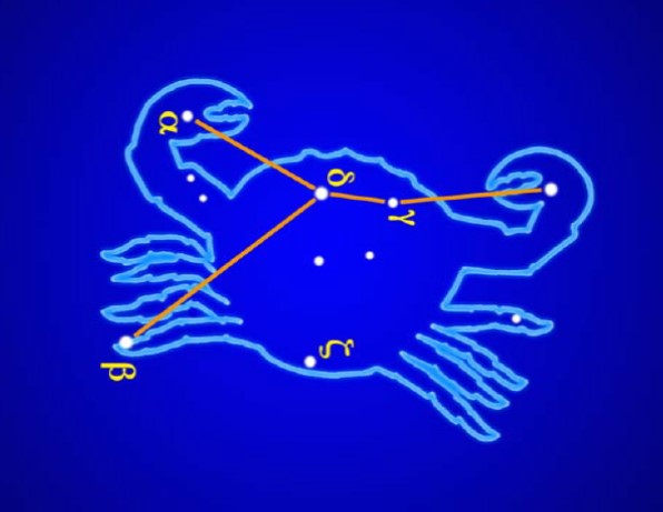 Las estrellas en las tenazas de la constelación de Cáncer se denominan: Acubens (α Cancri) y Altarf (β Cancri). Acubens se encuentra en la tenaza norte, mientras que Altarf se ubica en la tenaza sur.